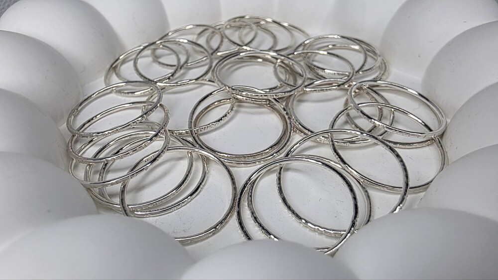 겉겉면에 망치 터치가 특징이며, 다른 반지와 연출해도 잘 어울리는 만능 반지.