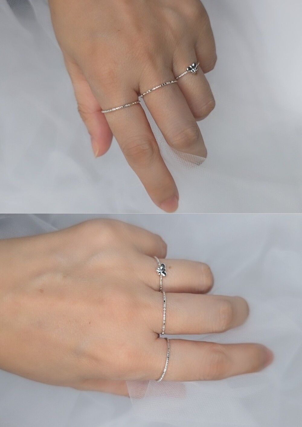 어떤 손가락에 착용하든 어렵지 않게 소화가 가능한 레이어드 반지입니다.