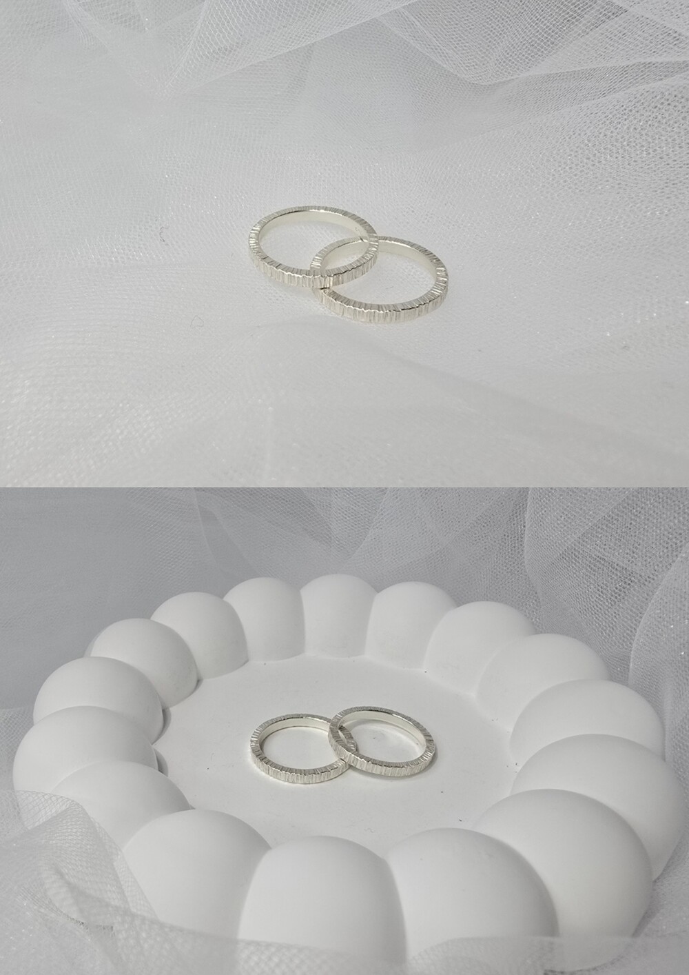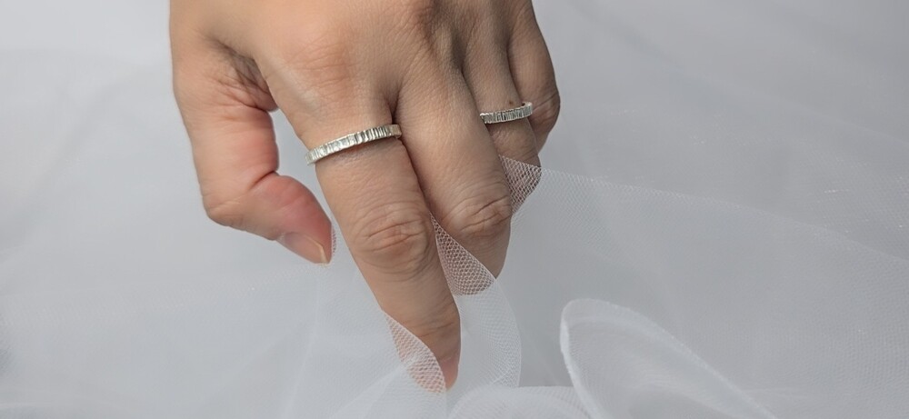 라인 무늬로 둘러진 반지입니다.레이어드 하기에도 좋고 데일리로 착용하기 좋은 심플한 반지.