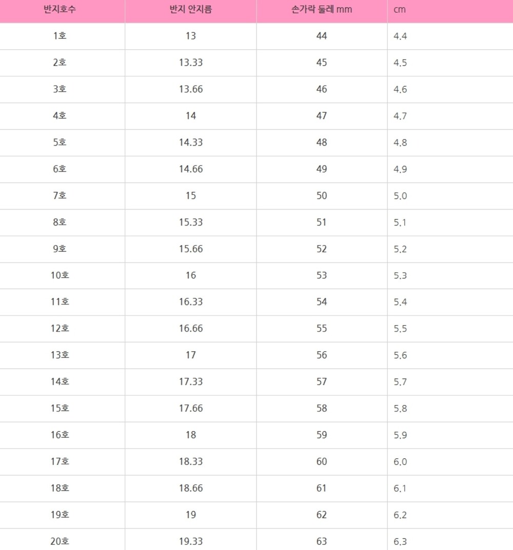 작성형 옵션란에 반지 사이즈를 기입해주시고 사이즈 표를 참고하여
